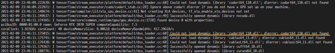 pip install tensorflow 로 설치 시, Could not load dynamic library 'cudnn64_110.dll', dlerror: cudnn64_110.dll not found 에러가 발생하여, GPU가 잡히지 않는 에러가 발생한 경우 해결방법입니다.